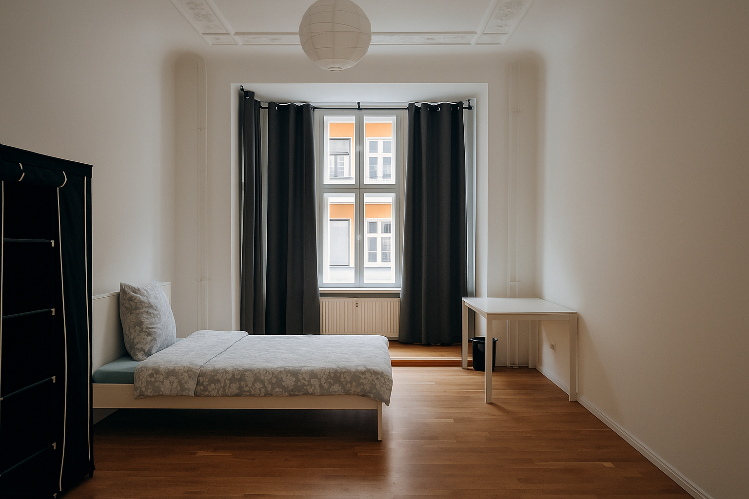 This spacious private bedroom (24 m²) is part of a newly renovated 3-bedroom apartment (80 m²) on the 1st floor. With modern amenities, an international community, and an unbeatable location near Karl-Marx-Straße U-Bahn, this is the perfect home for students and professionals.