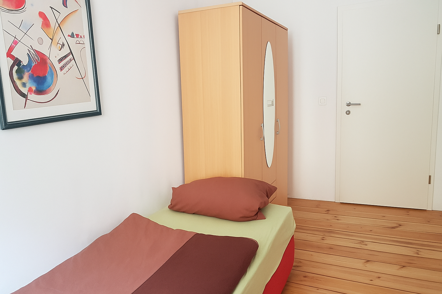 • Furnishings: Bed, wardrobe, desk, chair, lockable door