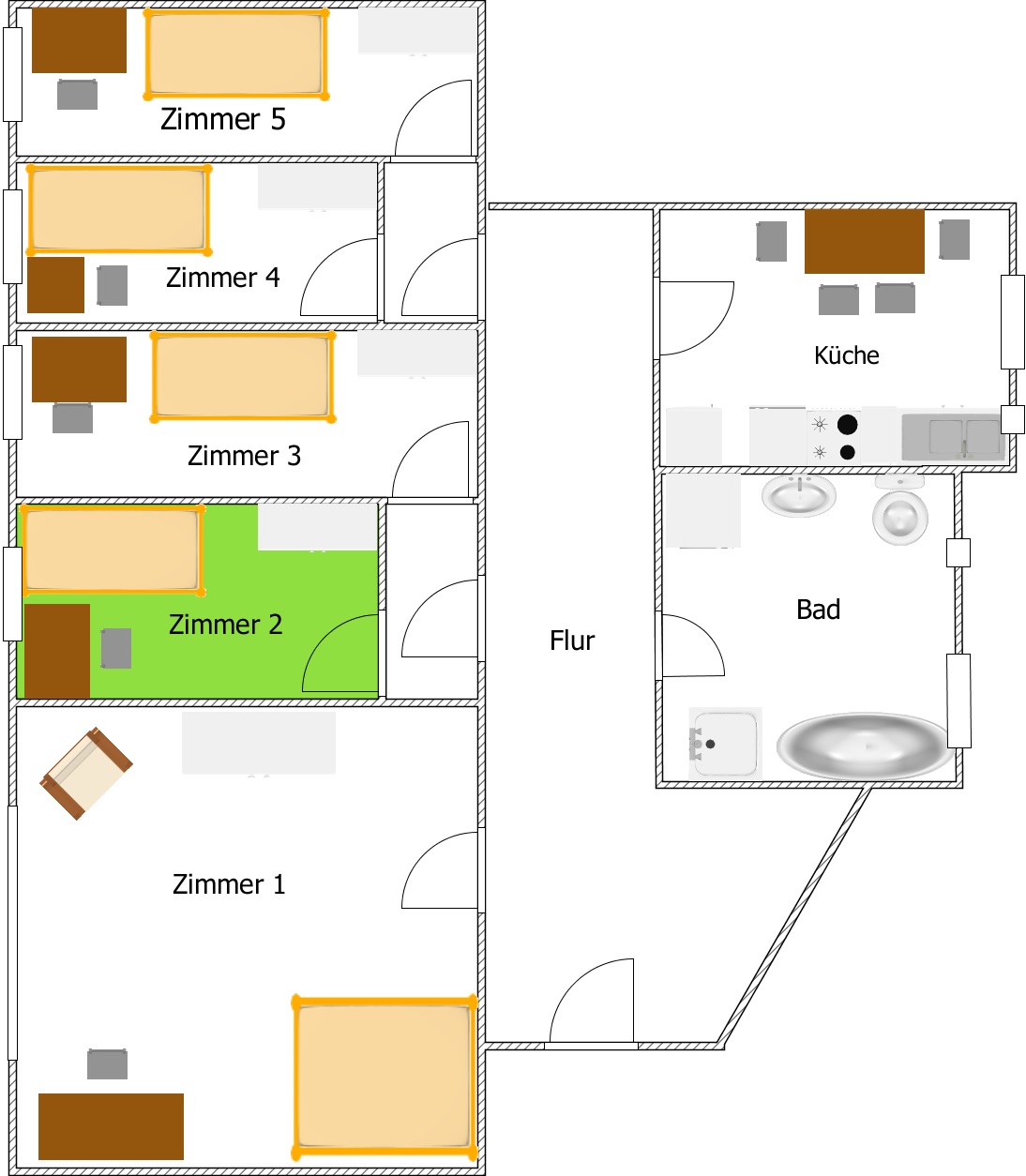 • Flat Setup: 5 private bedrooms, shared by 7 mixed housemates