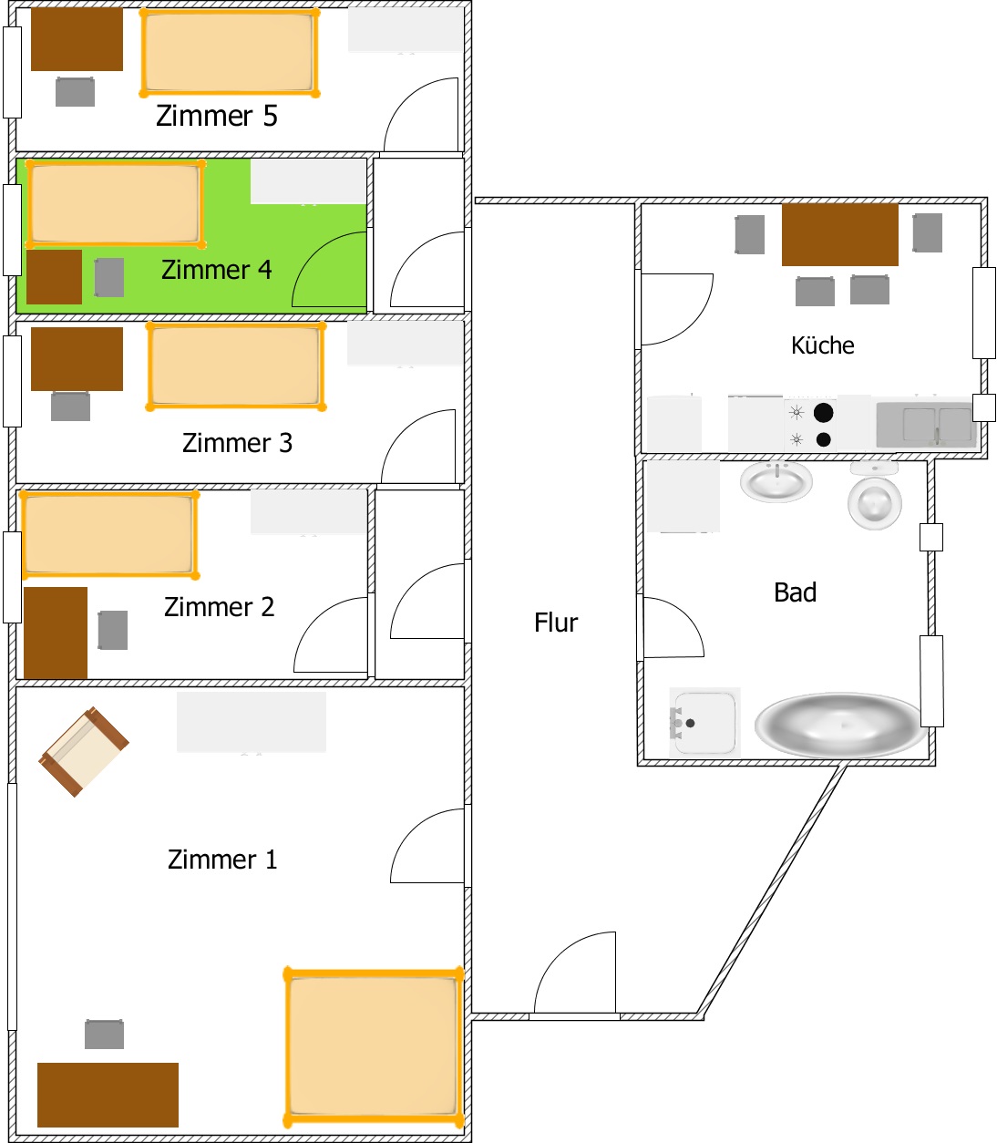 • Furnishings: Bed, wardrobe, desk, chair, lockable door