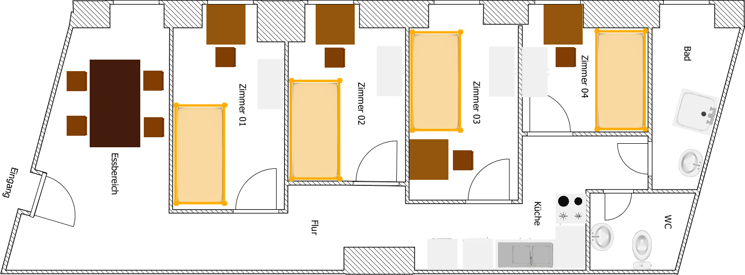 ✔ Shared Flat (70 m²) – 4 tenants total (3 flatmates, mixed)