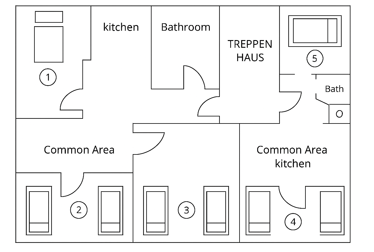 🏢 Apartment Type: 5-Bedroom Shared Apartment with Garden