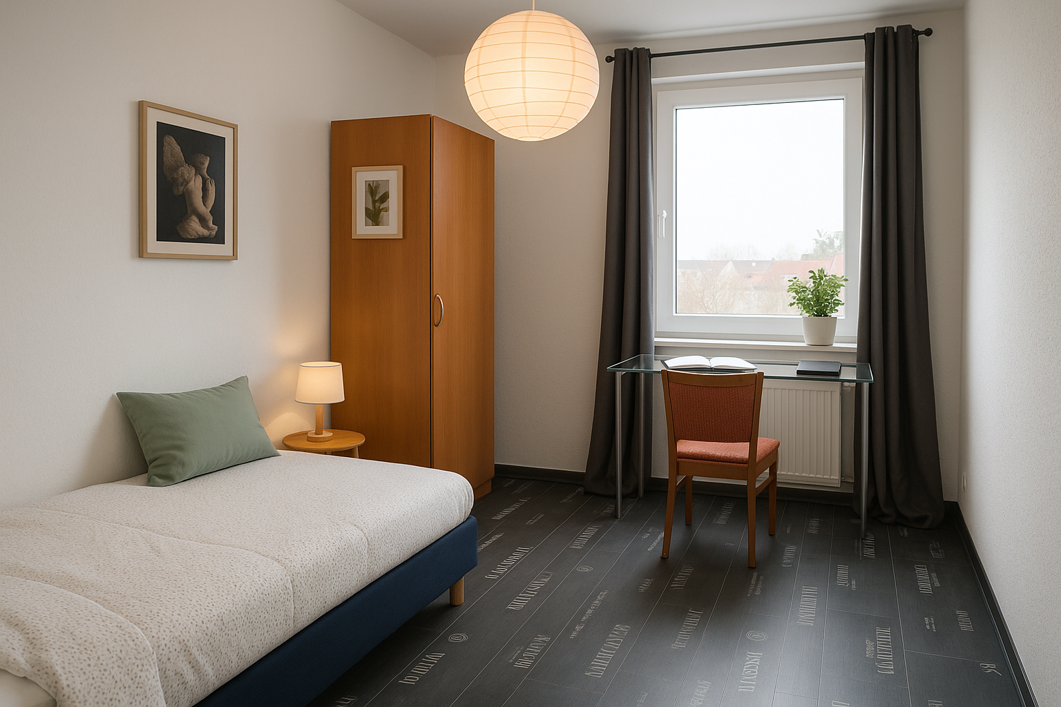 ✔ Shared Furnished Room – each tenant has their own bed, wardrobe, desk & chair