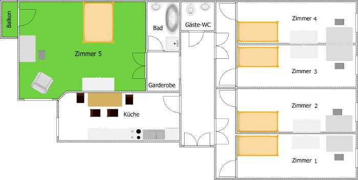 🏢 Apartment Type: Fully Furnished 5-Bedroom Shared Apartment (3 Private Rooms + 2 Shared Rooms)