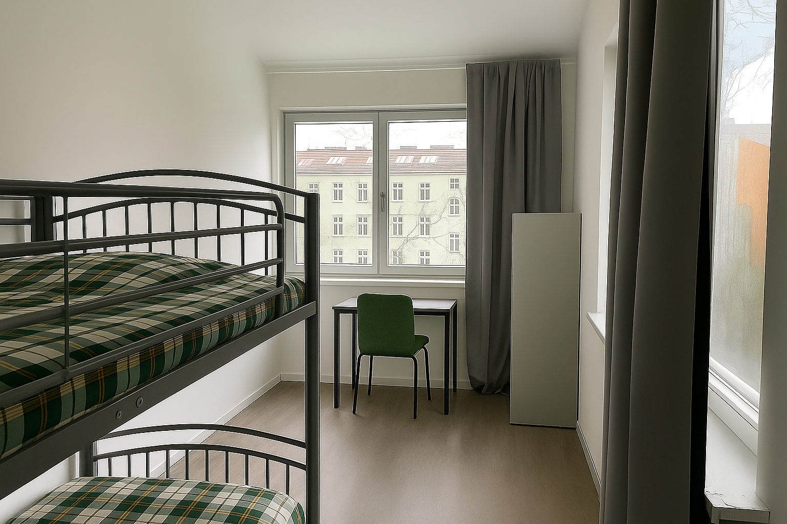 ✔ Shared Room: 12 m², furnished with bed, desk, chair & wardrobe