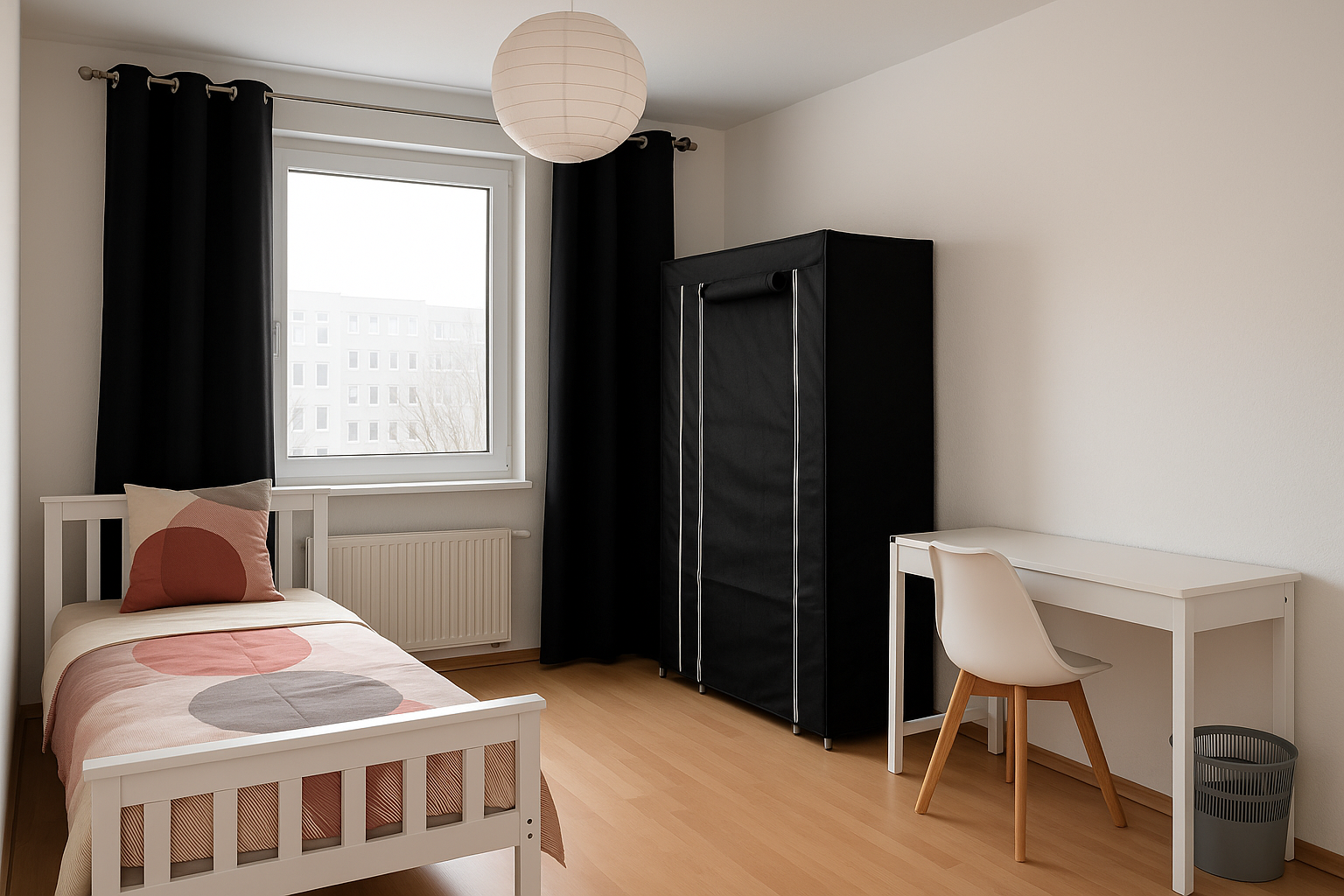 Private Room: 15 m², fully furnished (bed, wardrobe, desk, chair, lockable door)