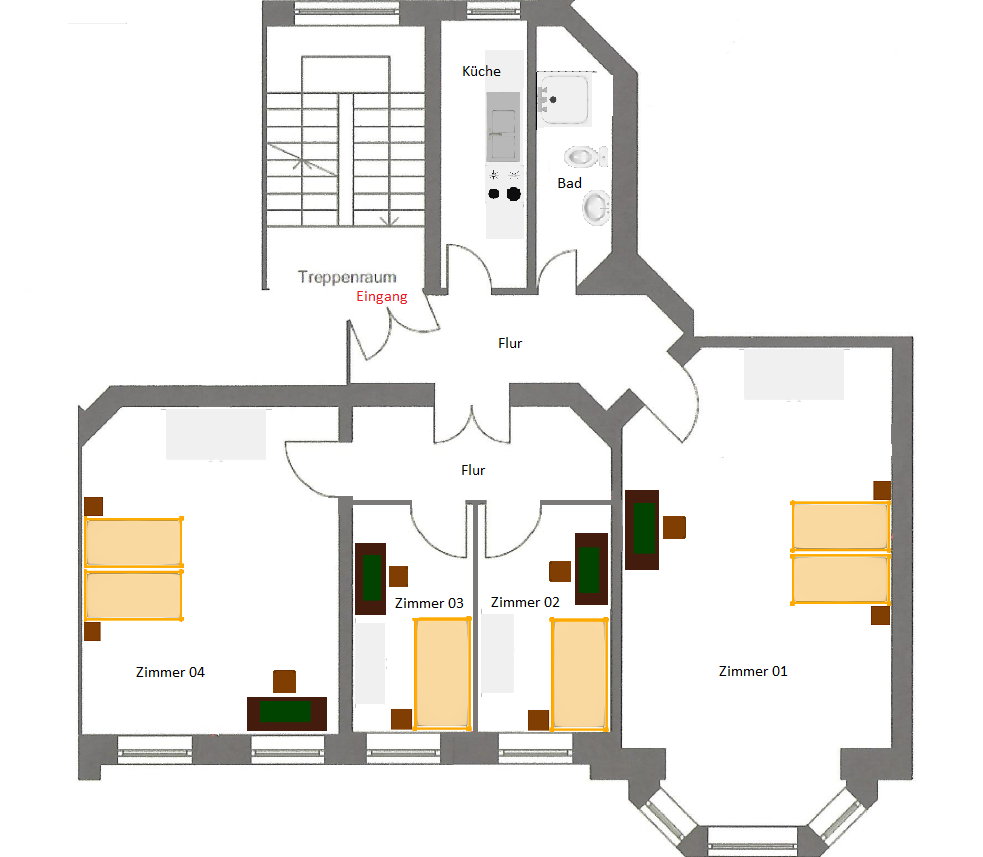 The apartment offers 2 private rooms and 2 shared rooms, housing a friendly international community of up to 8 tenants.