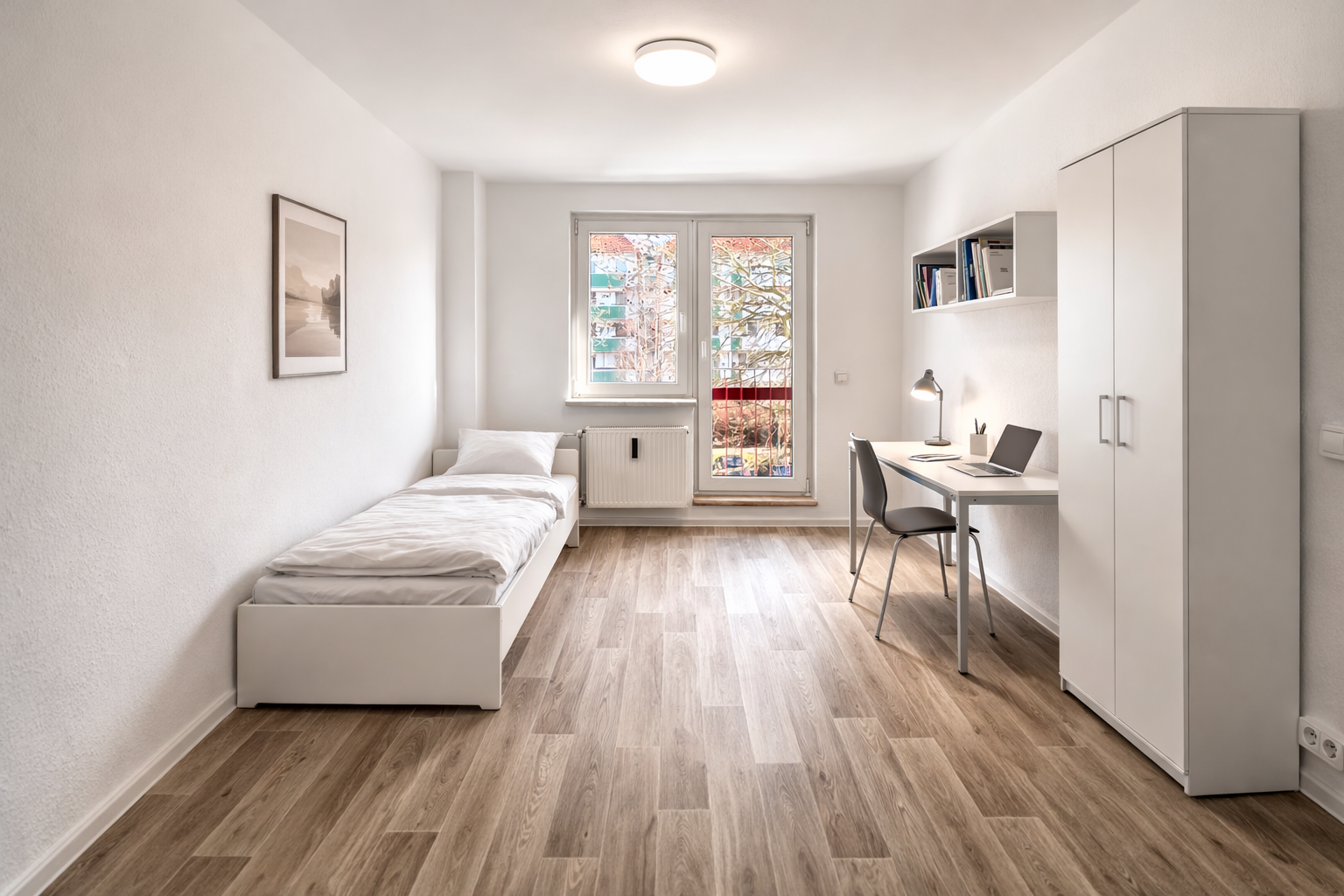 This bright WG room in Leipzig (04209) offers comfortable living in a quiet residential area – ideal for students, international students, and young professionals.
