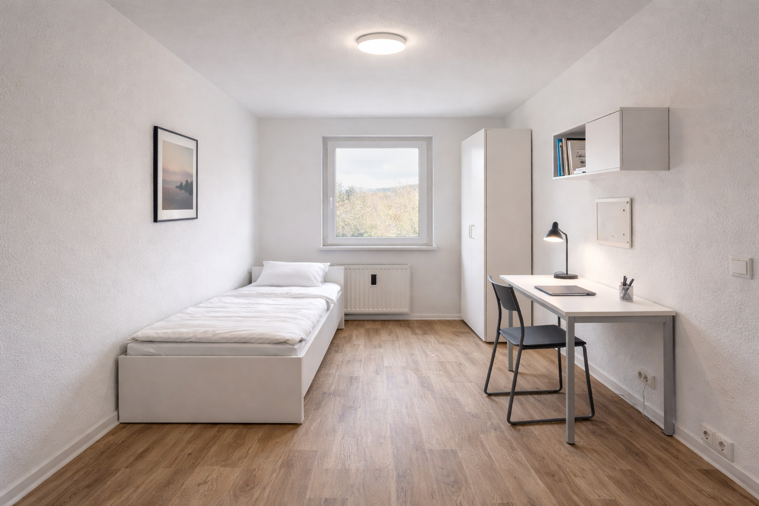 This bright WG room in Leipzig (04209) offers comfortable living in a quiet residential area – ideal for students, international students, and young professionals.